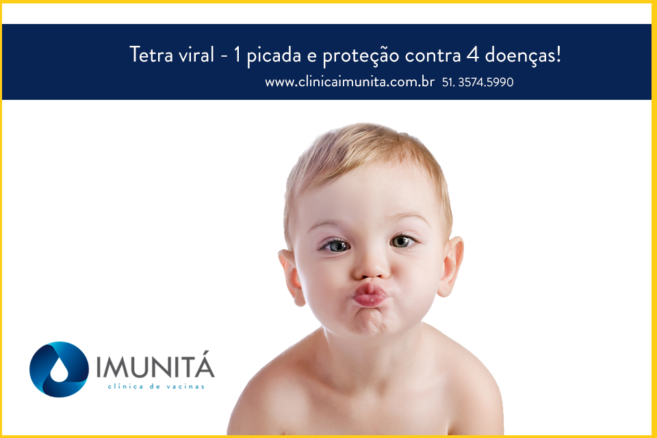 Seus filhos podem ficar bem longe de doenças muito comuns na infância – sarampo, rubéola, caxumba e catapora. Essa proteção é garantida com a vacina tetra viral. Ela deve ser aplicada aos 12 meses e tem um reforço aos 15 meses.